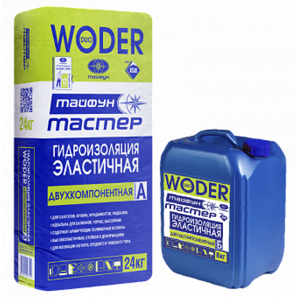 Тайфун Мастер WODER DUO Гидроизоляция эластичная, двухкомпонентная комплект (24кг+8кг)