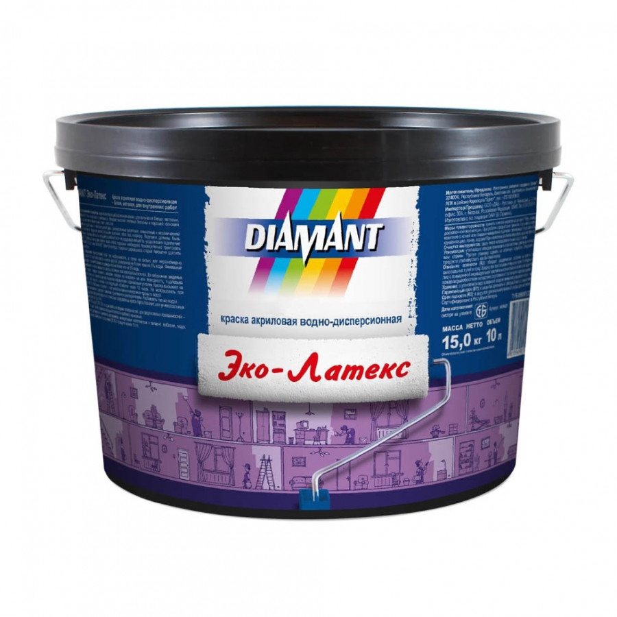 Краска Диамант Эко-Латекс белая матовая 10 л