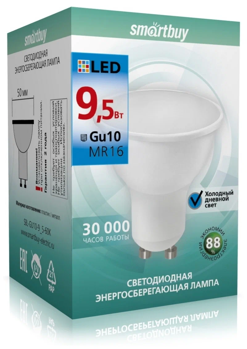 Лампа светодиодная (LED) Smartbuy-Gu10-9-5W/6000