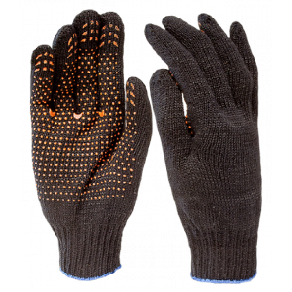 Перчатки рабочие х/б с ПВХ-точкой, черные (РФ)