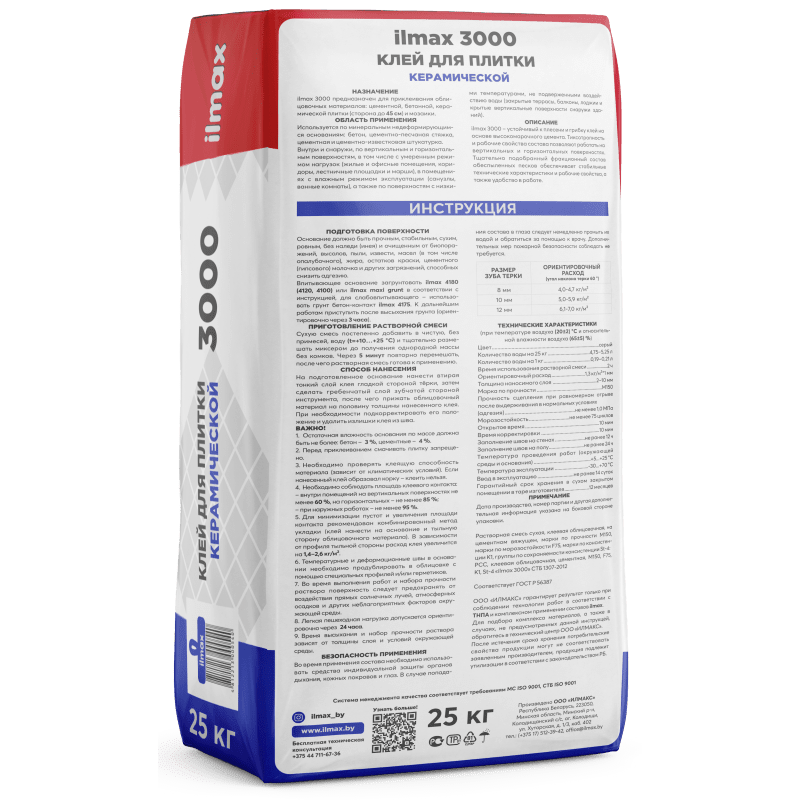 Клей для плитки ilmax 3000